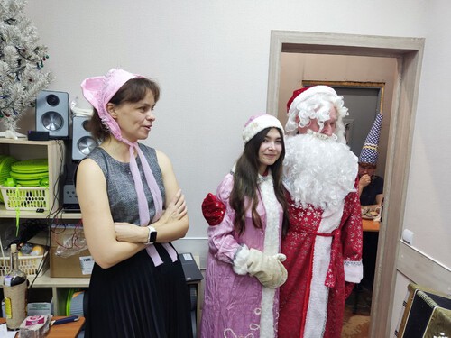 2025 год для организации был насыщен важными событиями — прошли выборы делегатов, групоргов, председателя и членов бюро и КРК. Продолжая эту тему, на «Огоньке» общим голосованием выбрали главных волшебников праздника. Ими стали самый зрелый и опытный участник В. Г. Разгуляев и самая юная гостья Д. А. Лебедева. В новых ролях Дед Мороз и Снегурочка поздравили всех с наступающим 2026 годом Огненной Лошади и вручили новогодние подарки за теплые поздравления.
